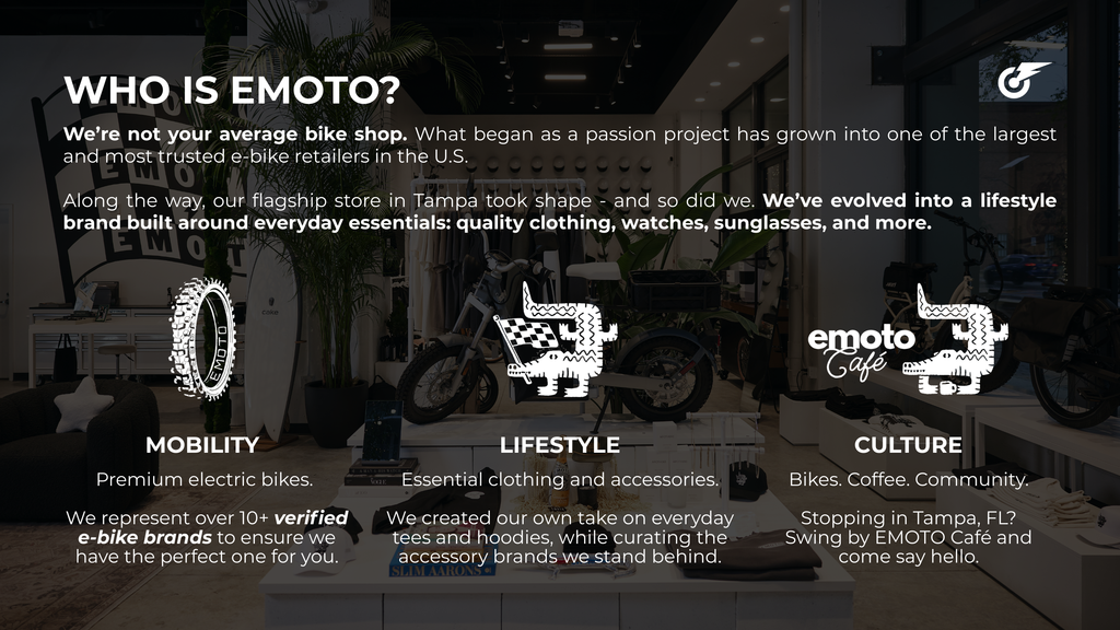 This is by far the best e-bike store I’ve ever been to. The varieties of bike they have in complete to say the least. Micheal who there from day one walked me through through the bike I was interested in the Beachman set me up for a test ride and two weeks later I picked one up. He has kept in touch with me has asked if everything is ok with the bike, do I like it and do I have any concerns. I highly recommended Emoto. 5 stars all day long.
