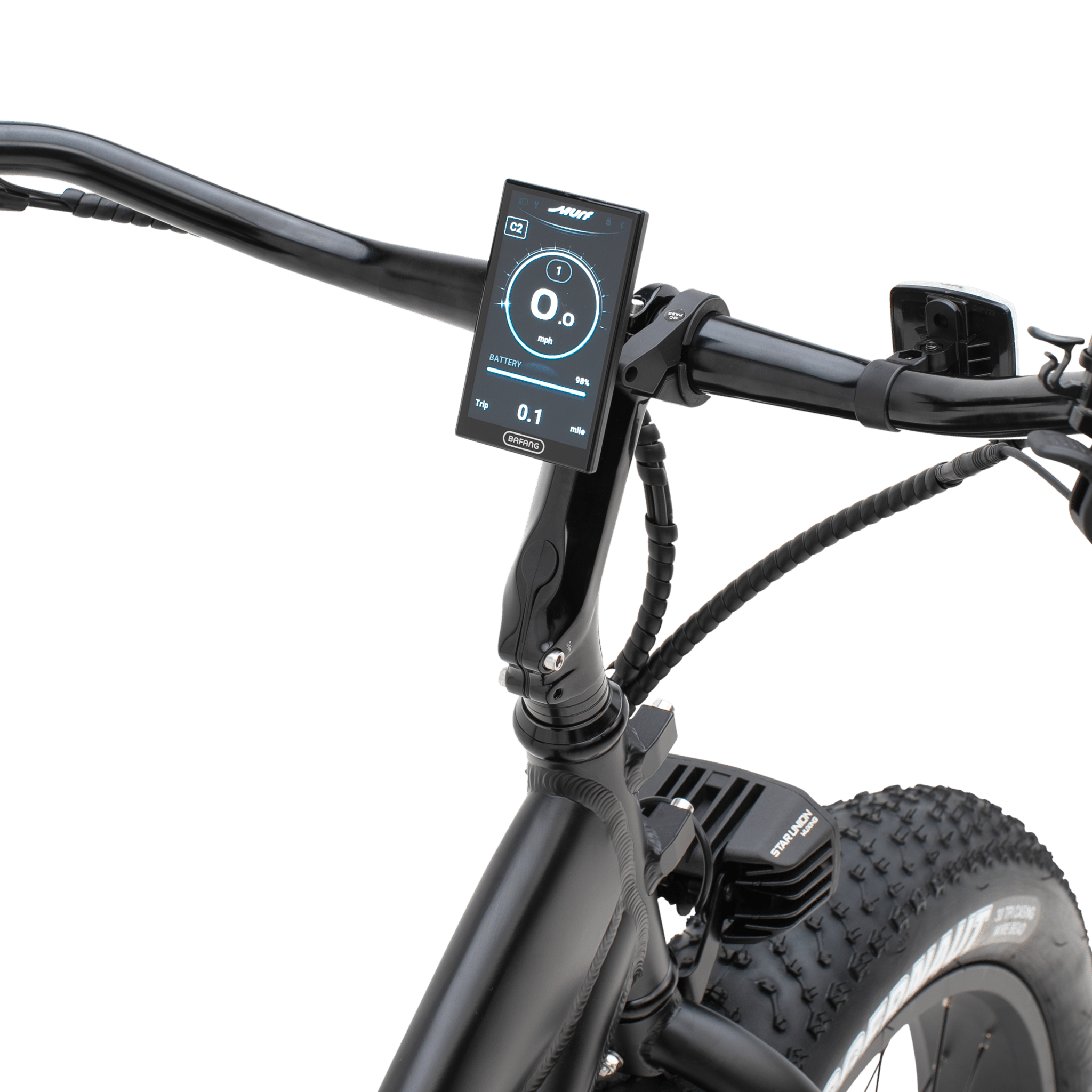 The Alpha ST is designed to take you farther, faster, and in style. Equipped with a 52-volt battery for maximum range and capable of hitting 28 MPH, it delivers unmatched power and performance. The sleek step-thru frame makes mounting and dismounting effortless, while top of the line components—4 piston hydraulic brakes, 6-LED off-road headlight, color display screen, and an integrated rear rack provide a premium experience.