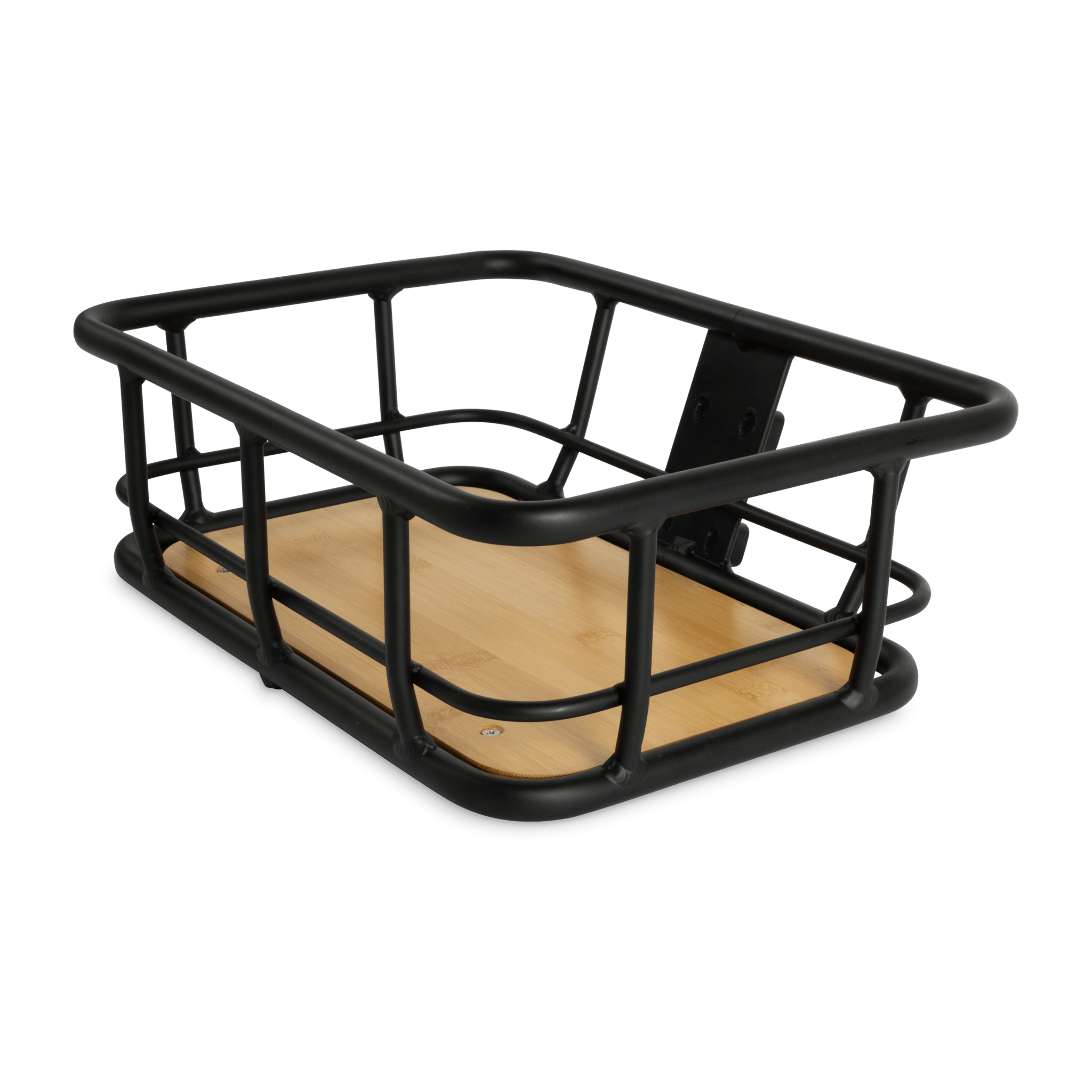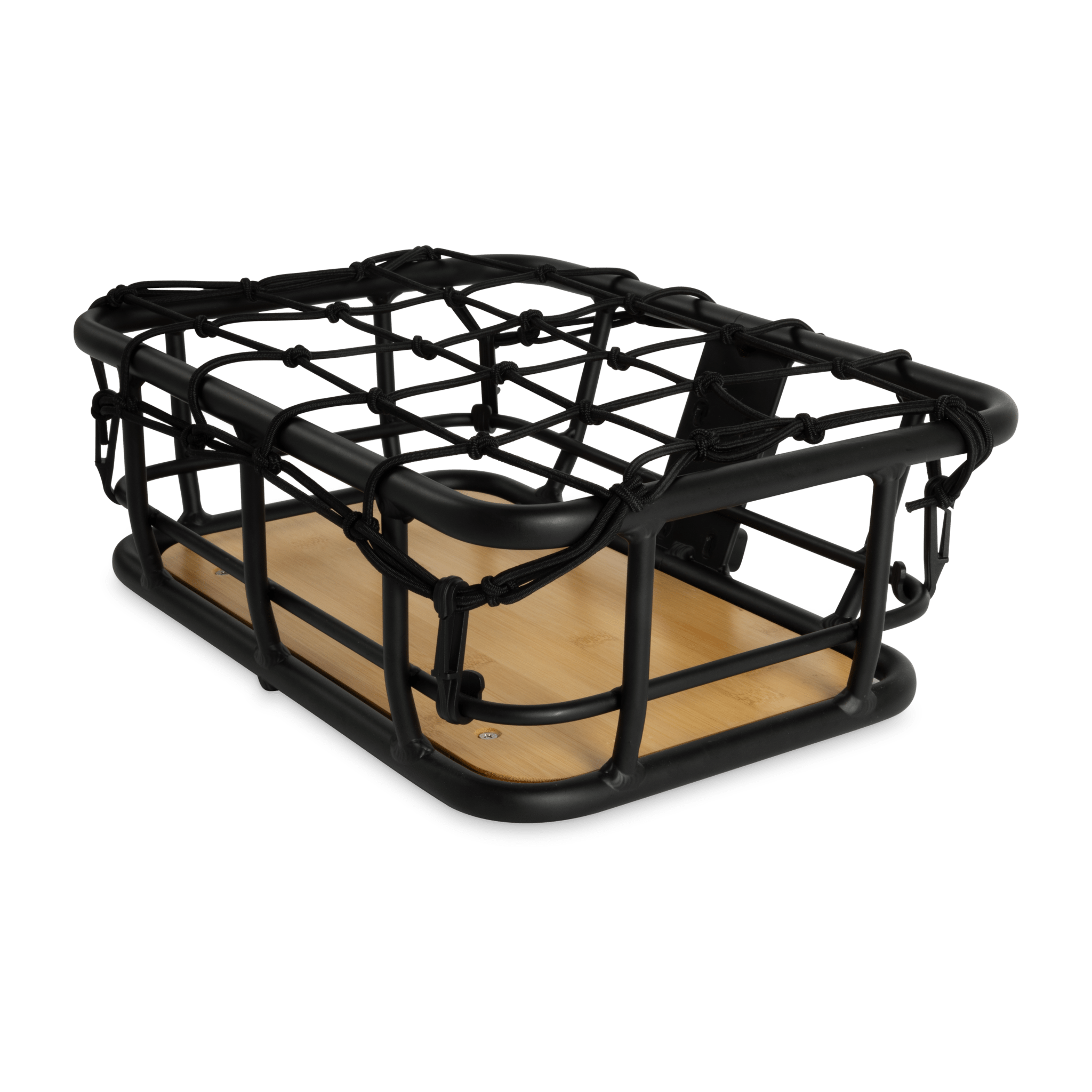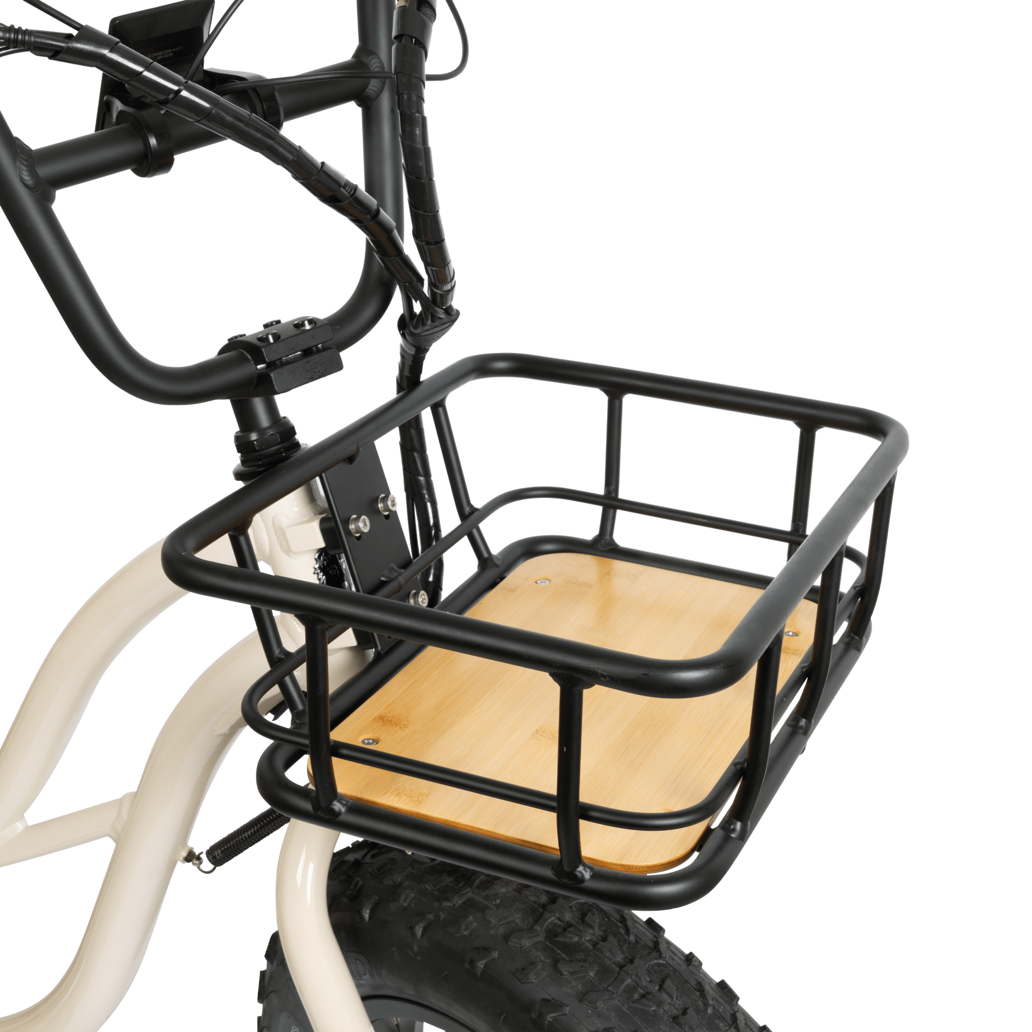 Front Basket: Elevate your Murf biking experience with the Front Basket. The Front Basket offers ample space to carry your essentials, from groceries to your daily gear. Its powder coated aluminum construction and bamboo bottom ensures durability, while the easy installation makes it a hassle-free addition to your Murf adventures. Add a Bungee Net to secure your cargo while you ride!