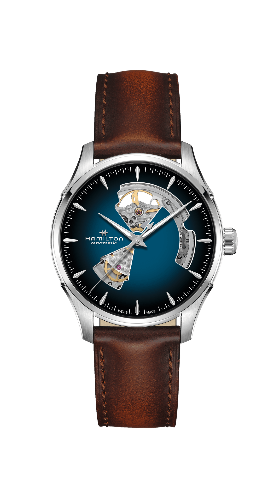A three-hand movement with or without a date function and boasting a superior power reserve of 80 hours, the H-10 appears with intricate contrasting snail and pearled patterns for the American Classic models it drives and streamlined surfaces for the pilots’ watches.