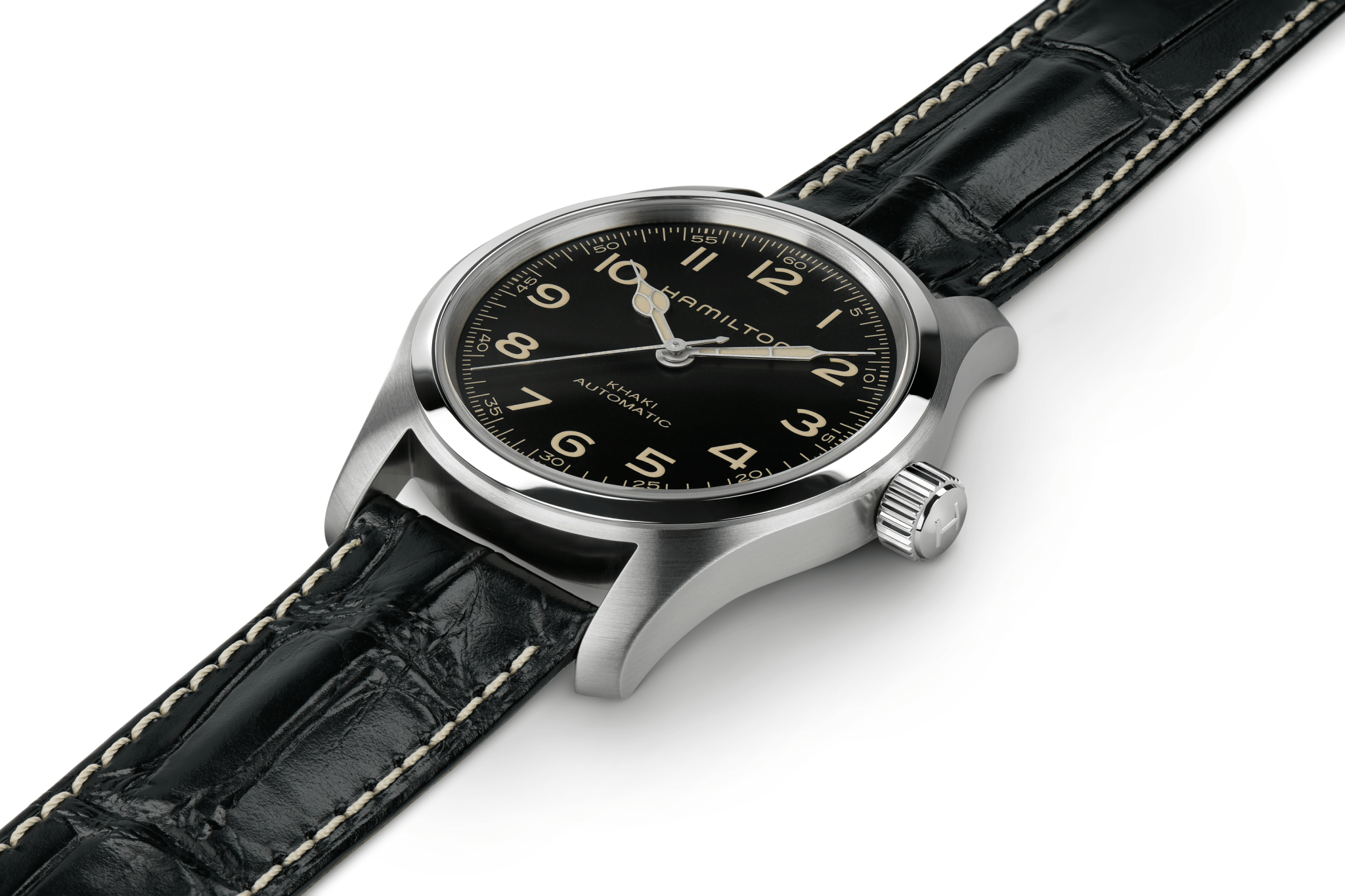A three-hand movement with or without a date function and boasting a superior power reserve of 80 hours, the H-10 appears with intricate contrasting snail and pearled patterns for the American Classic models it drives and streamlined surfaces for the pilots’ watches.