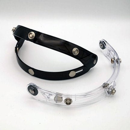 This adjustable bracket allows fixed 3-snap visors for the Bonanza helmet to swing up and out of your face for convenience.