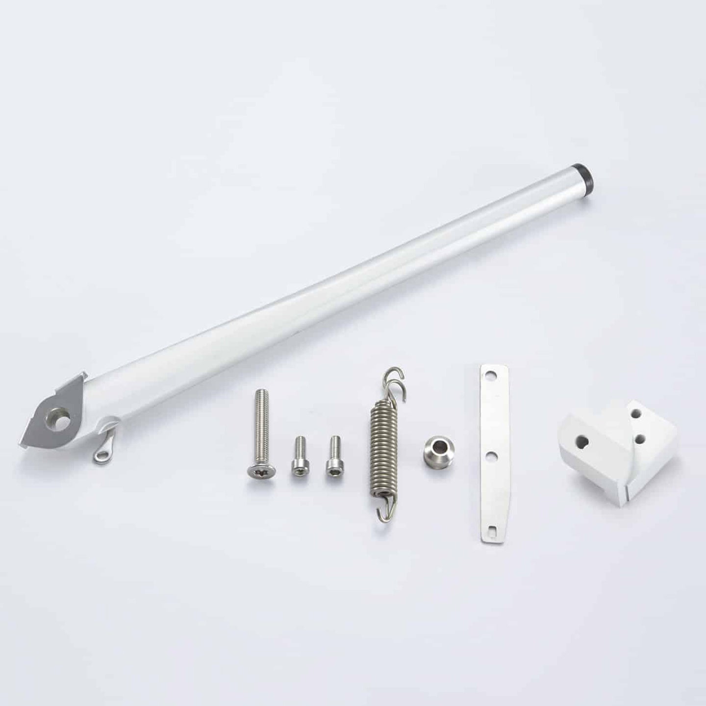 Side stand in 7075 aluminium alloy for the Kalk. To install, a left side plate is required.