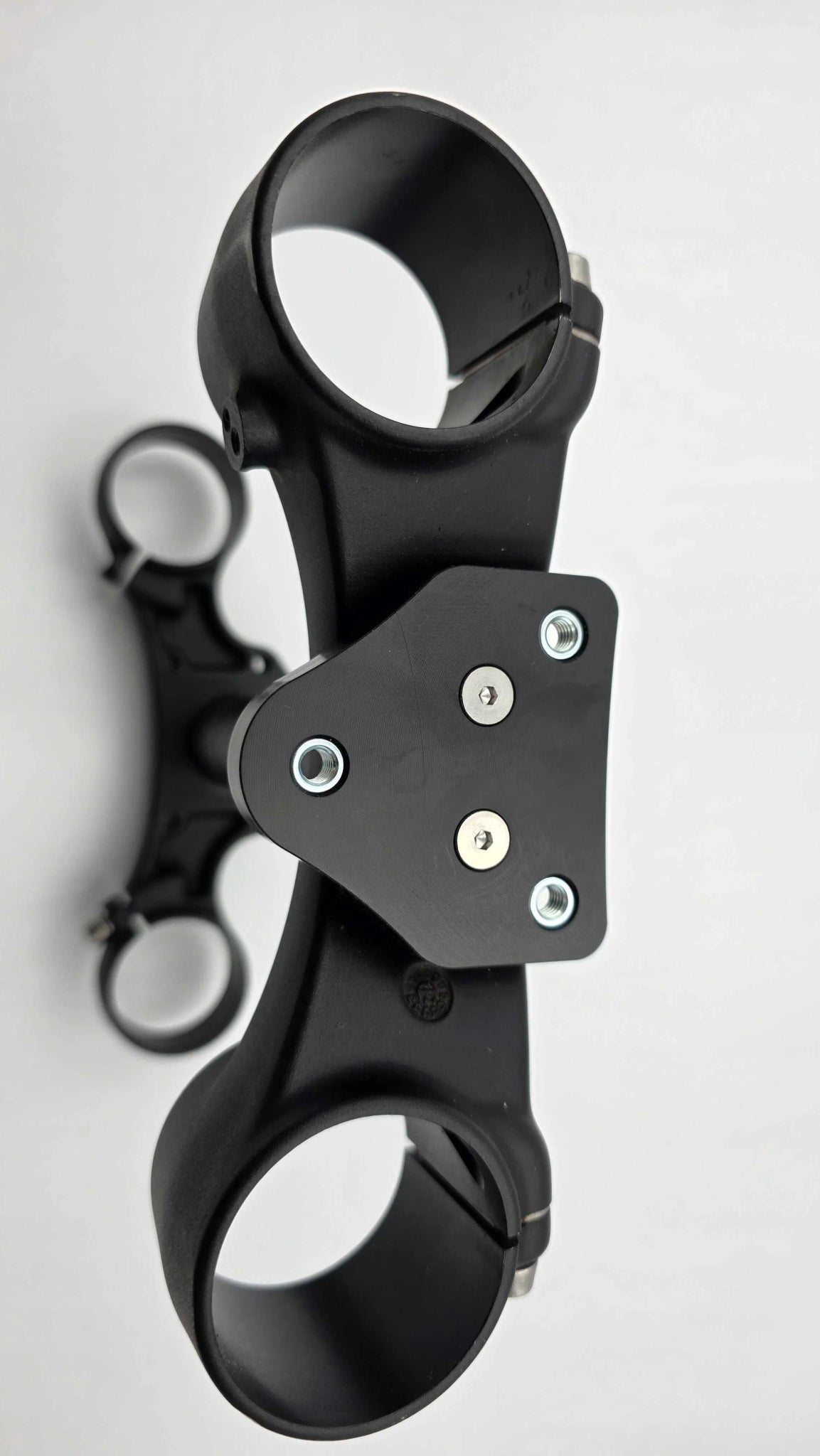 • This kit has a threaded rod that runs the full length of the steering tube bolt compressing the lower triple clamp to the upper triple clamp keeping your head bearings tight.