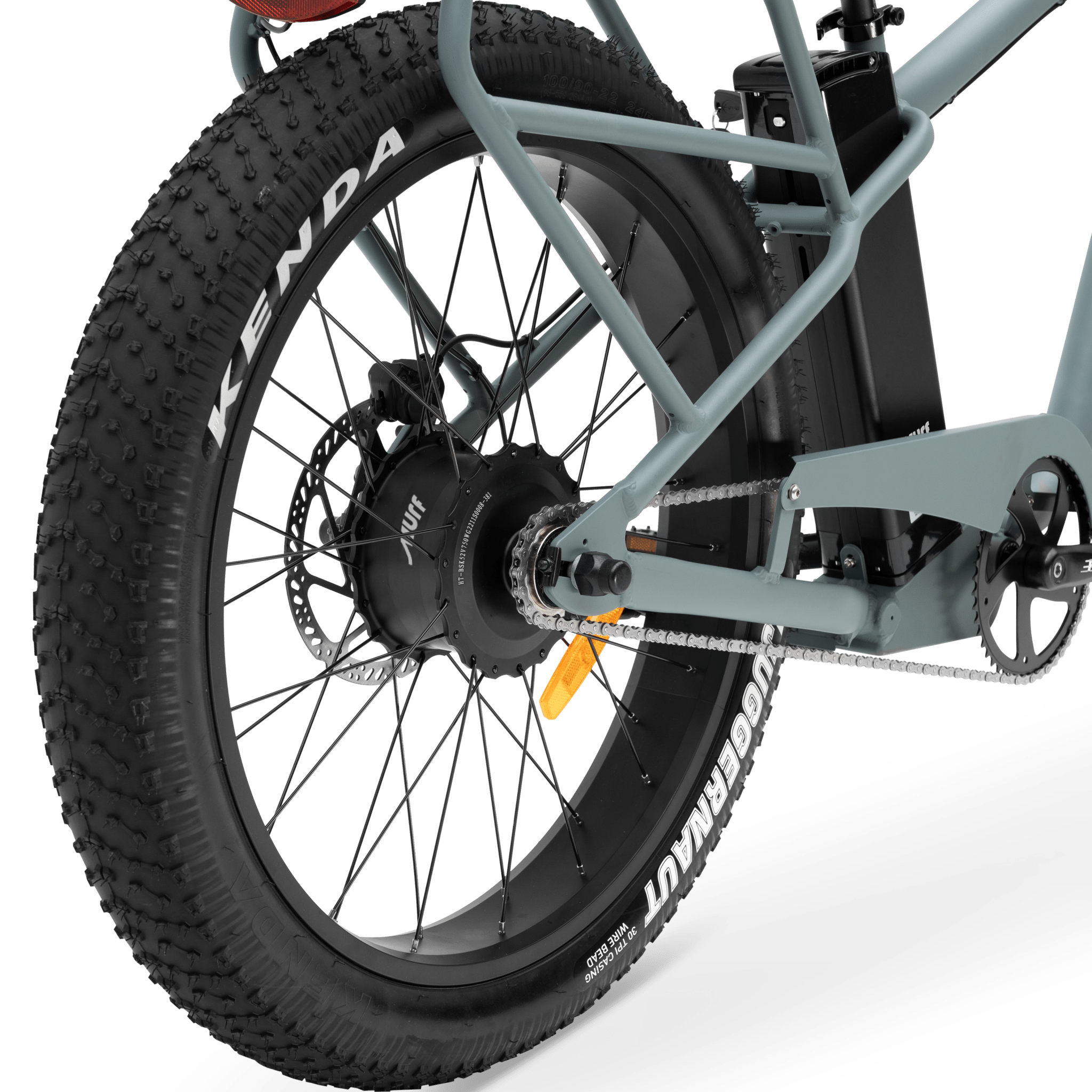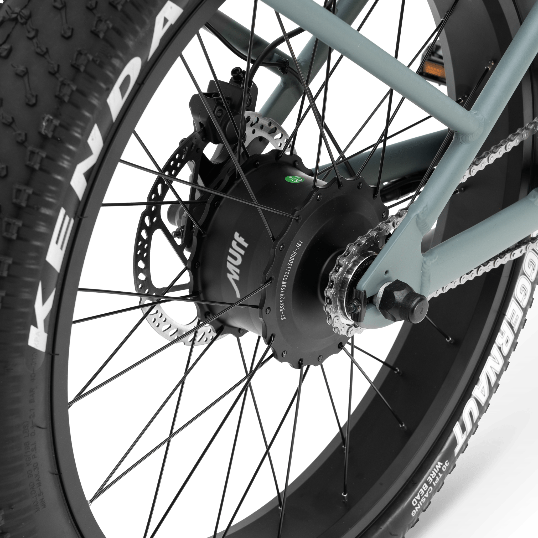 The Alpha is built to take you everywhere, fast. Powered by a 52-volt battery for maximum range and capable of reaching 28 MPH, it delivers unmatched power, speed, and performance wherever you ride. As the top dog of the Murf lineup, the Alpha comes fully loaded with premium features, including 4-piston hydraulic brakes for superior stopping power, a 6-LED off-road headlight for maximum visibility, a color display screen, and an integrated rear rack for added utility.